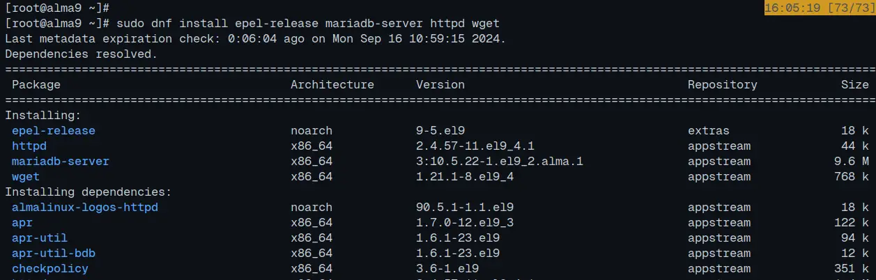 sudo dnf install epel-release mariadb-server httpd wget nano