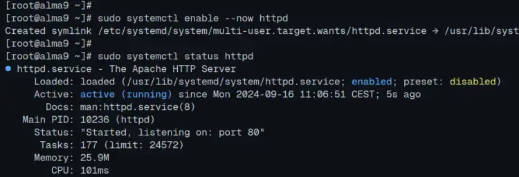 sudo systemctl enable --now httpd sudo systemctl status httpd