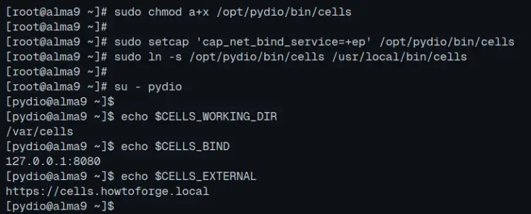 export CELLS_WORKING_DIR=/var/cells export CELLS_BIND=127.0.0.1:8080 export CELLS_EXTERNAL=https://cells.howtoforge.local
