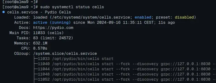 In this output, you can see the ‘cells‘ service is running in the background as a systemd service.